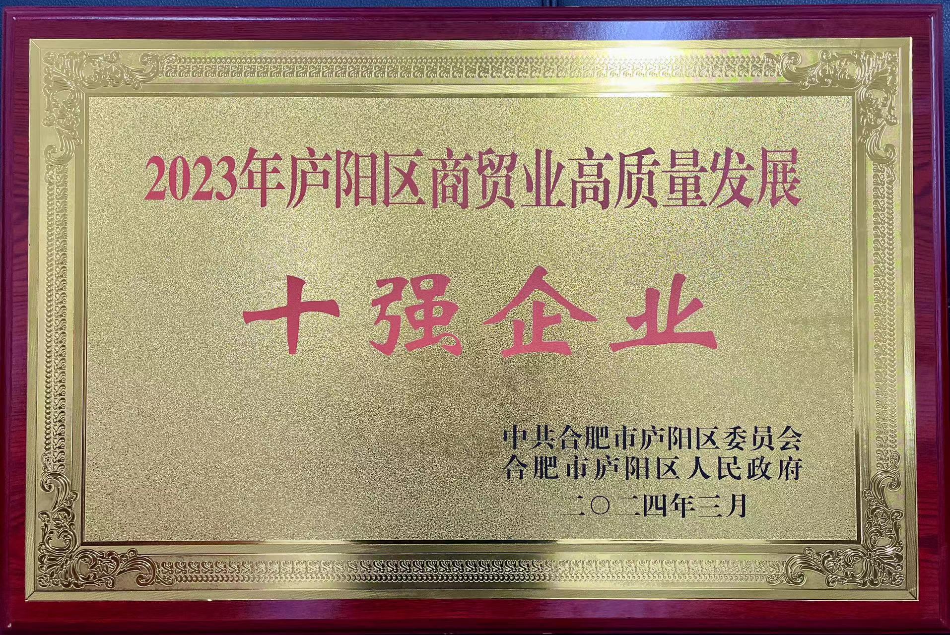 為大力弘揚(yáng)企業(yè)家精神,激勵(lì)企業(yè)家更加奮發(fā)有為干事創(chuàng)業(yè),廬陽(yáng)區(qū)委區(qū)政府印發(fā)《關(guān)于表?yè)P(yáng)2023年度合肥市廬陽(yáng)區(qū)服務(wù)業(yè)、金融業(yè)、商貿(mào)業(yè)、工業(yè)、建筑業(yè)高質(zhì)量發(fā)展10強(qiáng)企業(yè)和新質(zhì)生產(chǎn)力優(yōu)秀企業(yè)的通報(bào)》,對(duì)合肥市軌道交通集團(tuán)有限公司等服務(wù)業(yè)高質(zhì)量發(fā)展10強(qiáng)企業(yè)、建信信托有限責(zé)任公司等金融業(yè)高質(zhì)量發(fā)展10強(qiáng)企業(yè)、安徽省順朝物資有限公司等商貿(mào)業(yè)高質(zhì)量發(fā)展10強(qiáng)企業(yè)、志邦家居股份有限公司等工業(yè)高質(zhì)量發(fā)展10強(qiáng)企業(yè)、中鐵四局集團(tuán)第一工程有限公司等建筑業(yè)高質(zhì)量發(fā)展10強(qiáng)企業(yè)、合肥安信瑞德精密制造有限公司等15家新質(zhì)生產(chǎn)力優(yōu)秀企業(yè)予以通報(bào)表?yè)P(yáng),并于3月5日召開的廬陽(yáng)區(qū)推動(dòng)經(jīng)濟(jì)高質(zhì)量發(fā)展大會(huì)上向上述企業(yè)授牌。