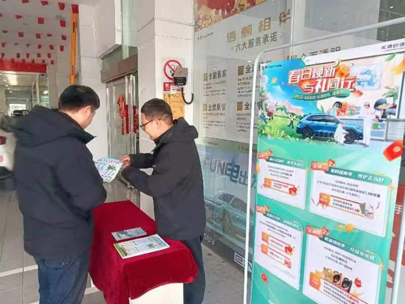 在售后服務大廳的客戶休息區,公司設置了“車輛保養知識宣傳臺”,安排專業技師向客戶介紹車輛保養小知識和日常車輛使用常識。同時,為保障員工和廣大客戶生命財產安全,阜陽迎駕店邀請市經開區交警隊開展安全駕駛教育,發放“0酒駕”宣傳冊,教育引導員工和客戶樹牢“開車不喝酒,喝酒不開車”的意識,并向所有進店的客戶、快遞和外賣小哥贈送口罩。