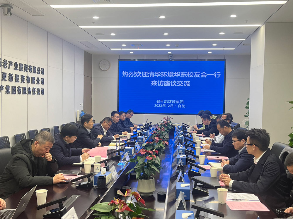 12月19日,清華大學環(huán)境學院華東校友會及安徽省環(huán)境保護產(chǎn)業(yè)協(xié)會一行到集團考察,圍繞生態(tài)環(huán)境板塊的業(yè)務、技術、項目合作進行了深入座談交流,省生態(tài)環(huán)境產(chǎn)業(yè)集團黨委副書記、工會主席、職工董事楊曉彬主持座談。